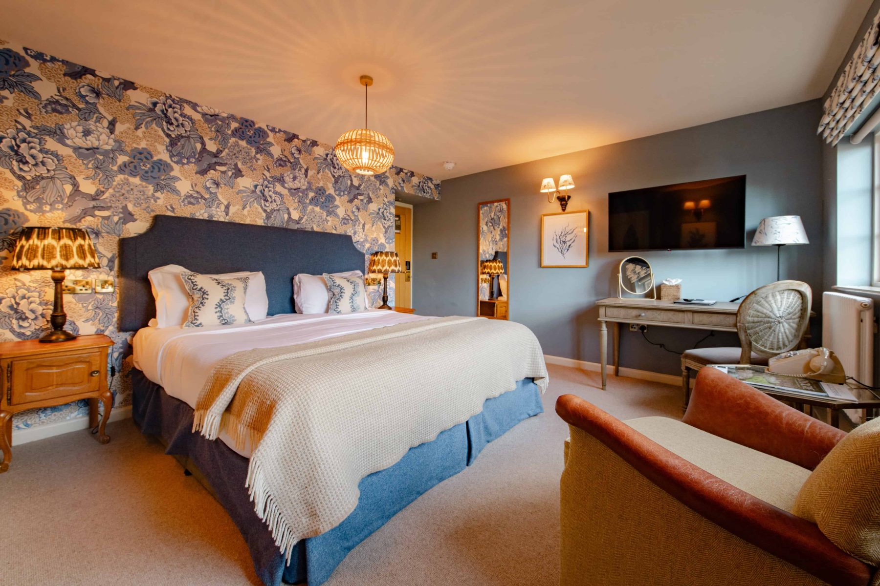 Each of the Manor House’s individually designed bedrooms tells its own story, with thoughtful details that blend historic charm and modern indulgence. Expect plush beds dressed in crisp white sheets, rich fabrics, and calming colour palettes inspired by the surrounding countryside.